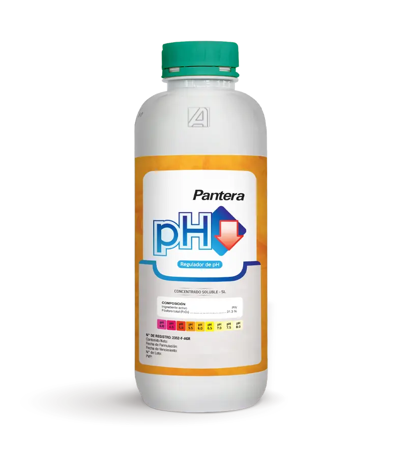 Regulador de pH para soluciones de fertilizantes, con agente colorimétrico.