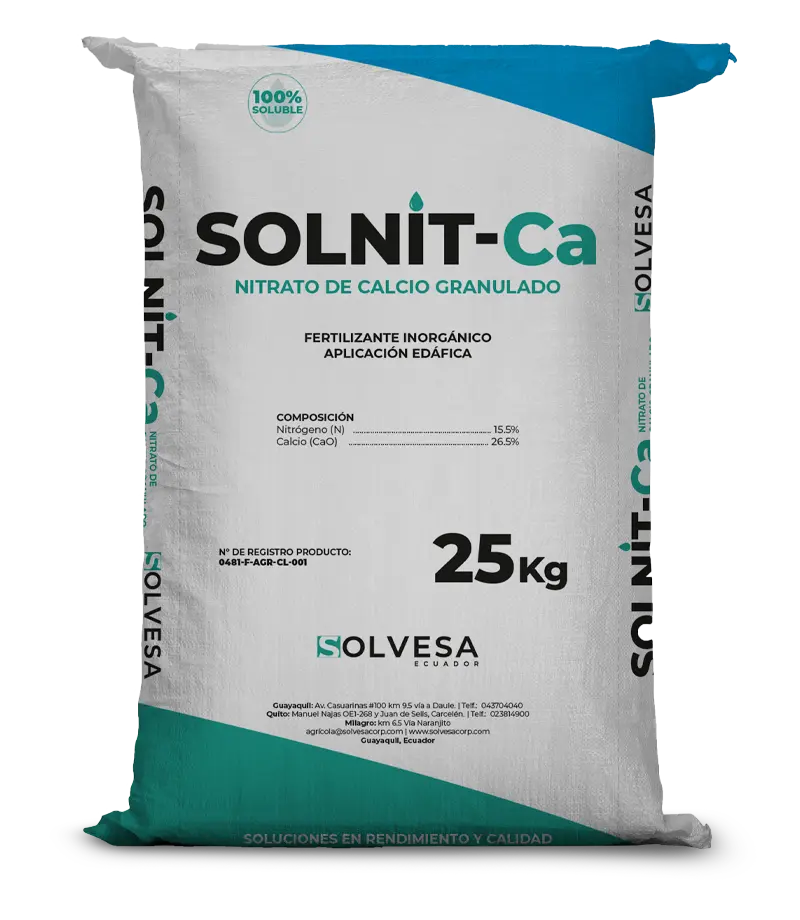 Fertilizante rico en nitrato de calcio, soluble, no inflamable.