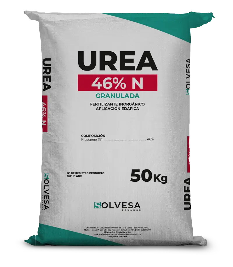 Fertilizante nitrogenado en forma perlada que aporta nitrógeno en forma ureica, ideal para todas las fases del cultivo.